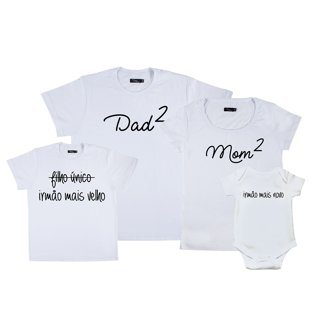 Kit Família 03 Camisetas e 01 Body Pai e Mãe de 02 | Irmão Mais Velho e Irmão Mais Novo